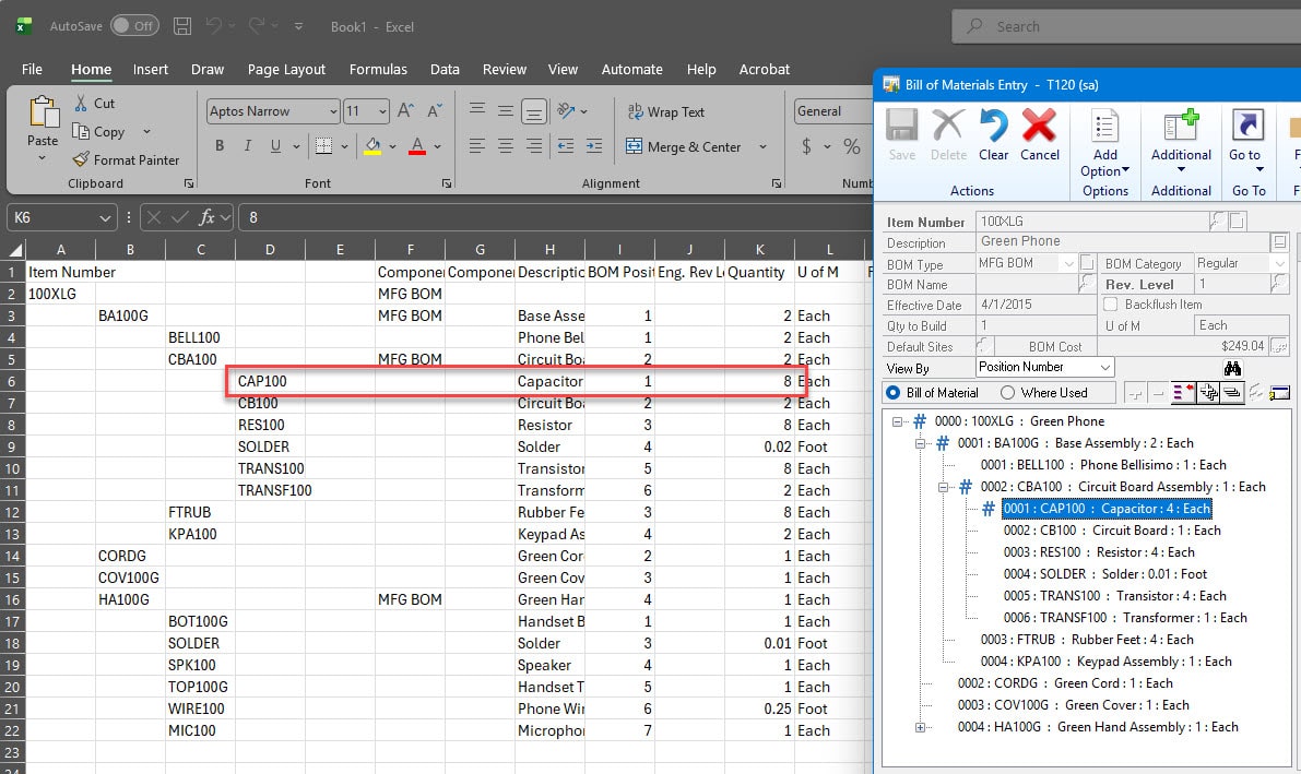 * Indented BOM Report: the report now calculates the EXTENDED component quantity. The Quantity field will now show extended quantity for each component rather than the BOM quantity.