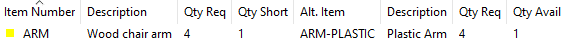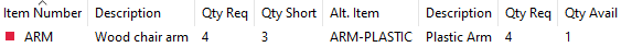 For Alternate items, usage of the item will be based on the Alternate Item Usage setting (either from the Default in Setup, or the setting specific to the Primary-Alternate pair). If you need 8 of the Primary but only have 2, it will use 6 of the Alternate (if “Use Primary AND Alternate” is selected), otherwise it will use whichever item can better meet the requirement.