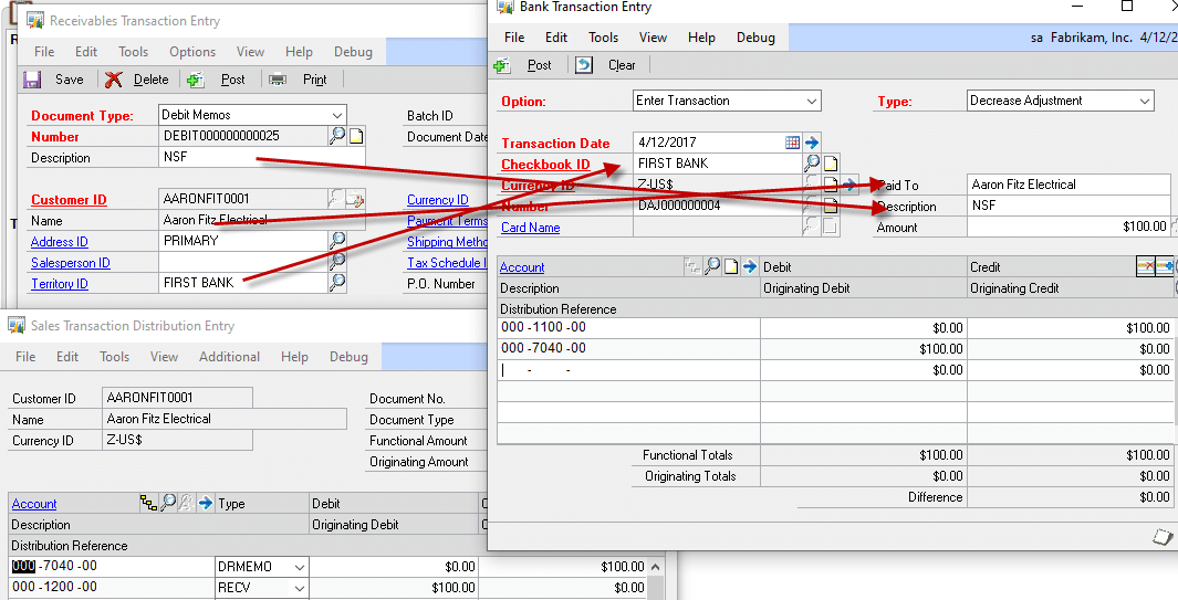 On the Debit Memo, they will enter a “Sales Territory” that matches a Checkbook ID (a Sales Territory ID will be created that exactly matches Checkbook IDs). Other field map as shown below: